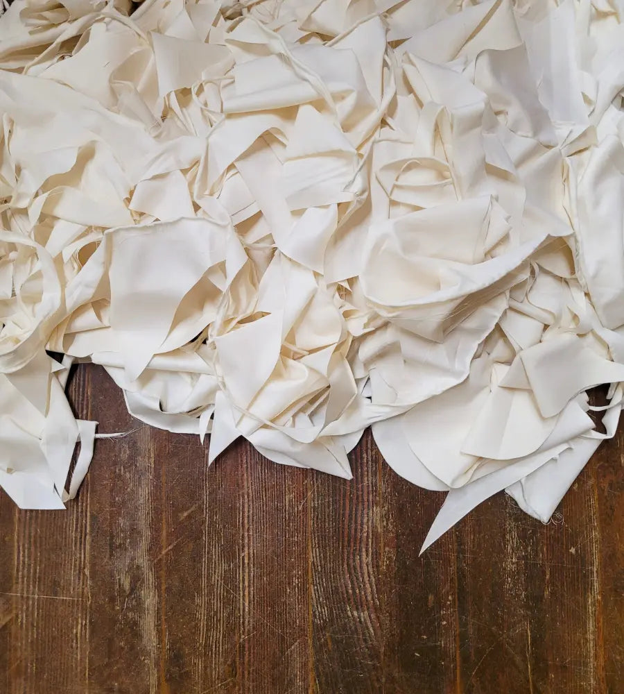 Fabric and wool batting are cut efficiently to minimize remnants. Each stage of our production process has a plan for what to do with the remnant pieces.